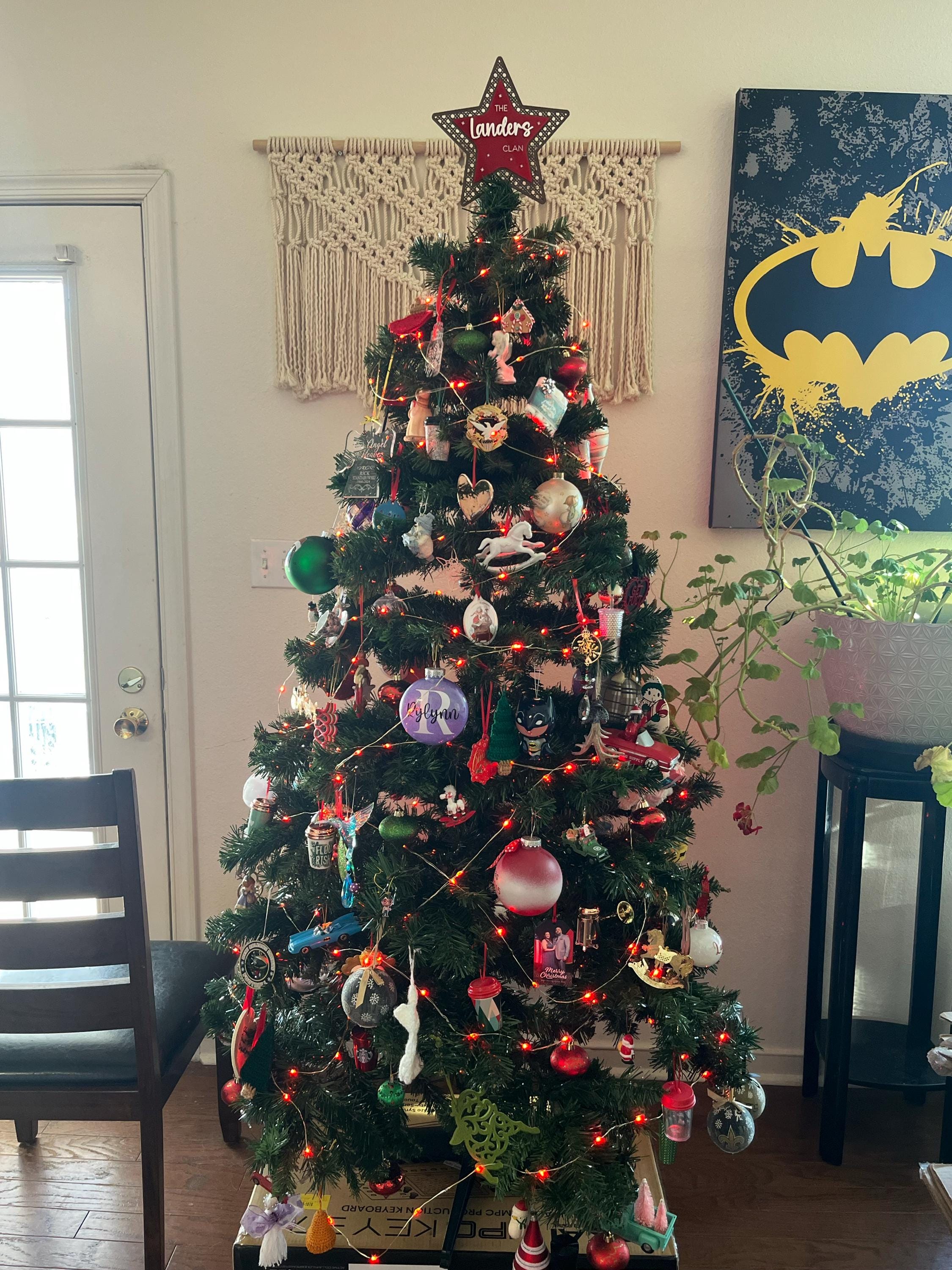 This is a beautiful tree topper! When we were deciding, it was a little bit challenging to identify the "right" color, or which color was which, so the one we chose was a little darker than I had wanted. That said, it looks great and nice to have such a personal touch on our tree!