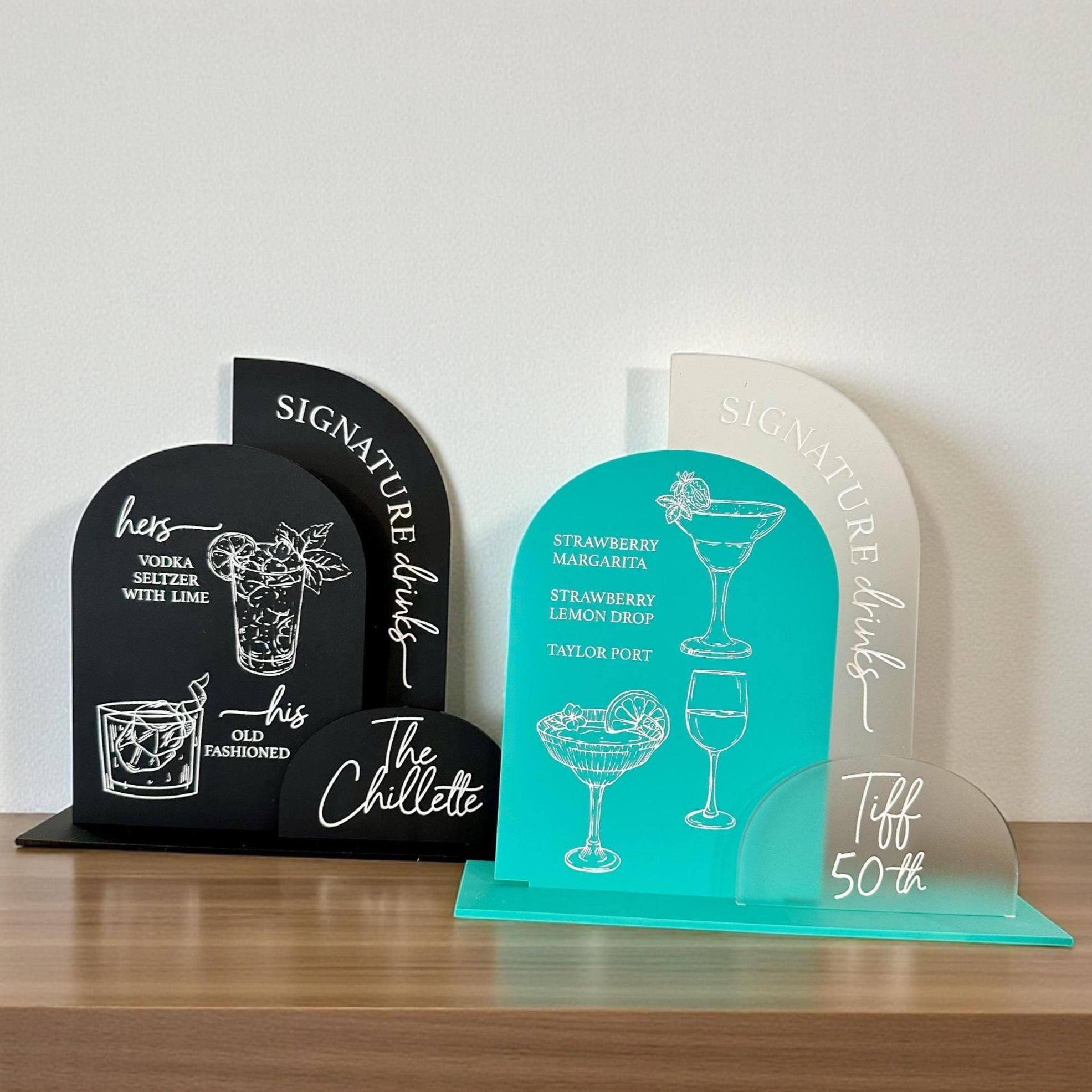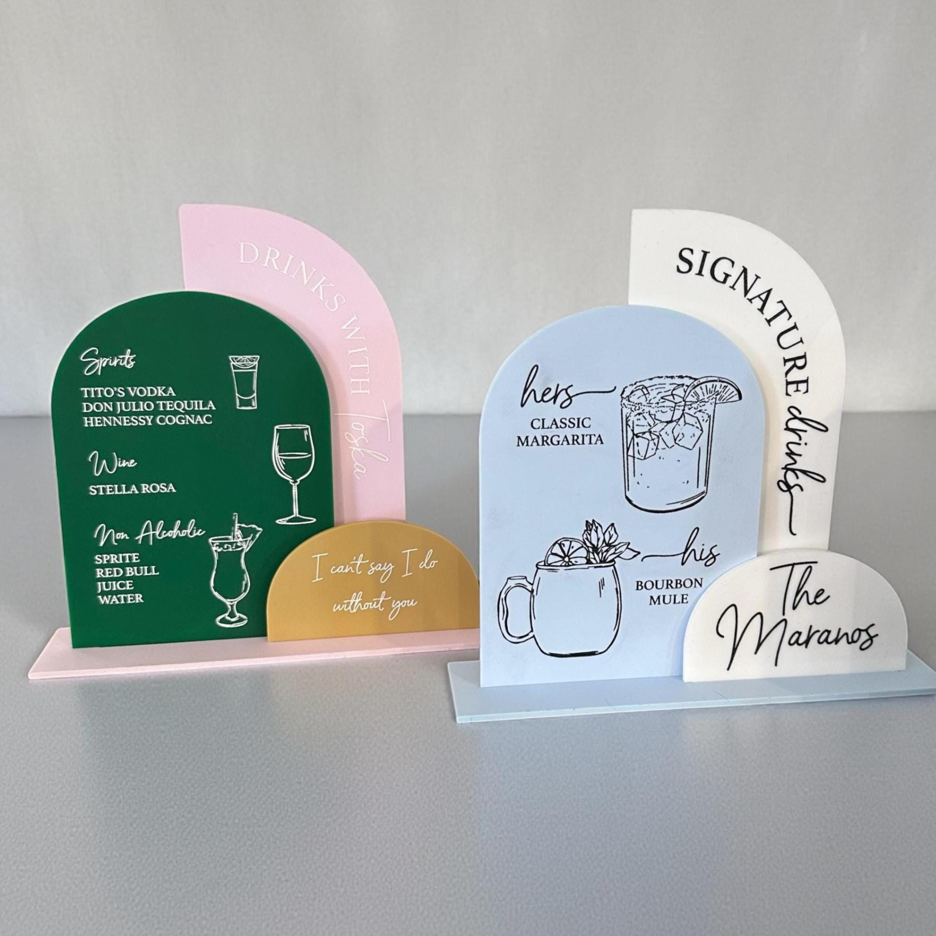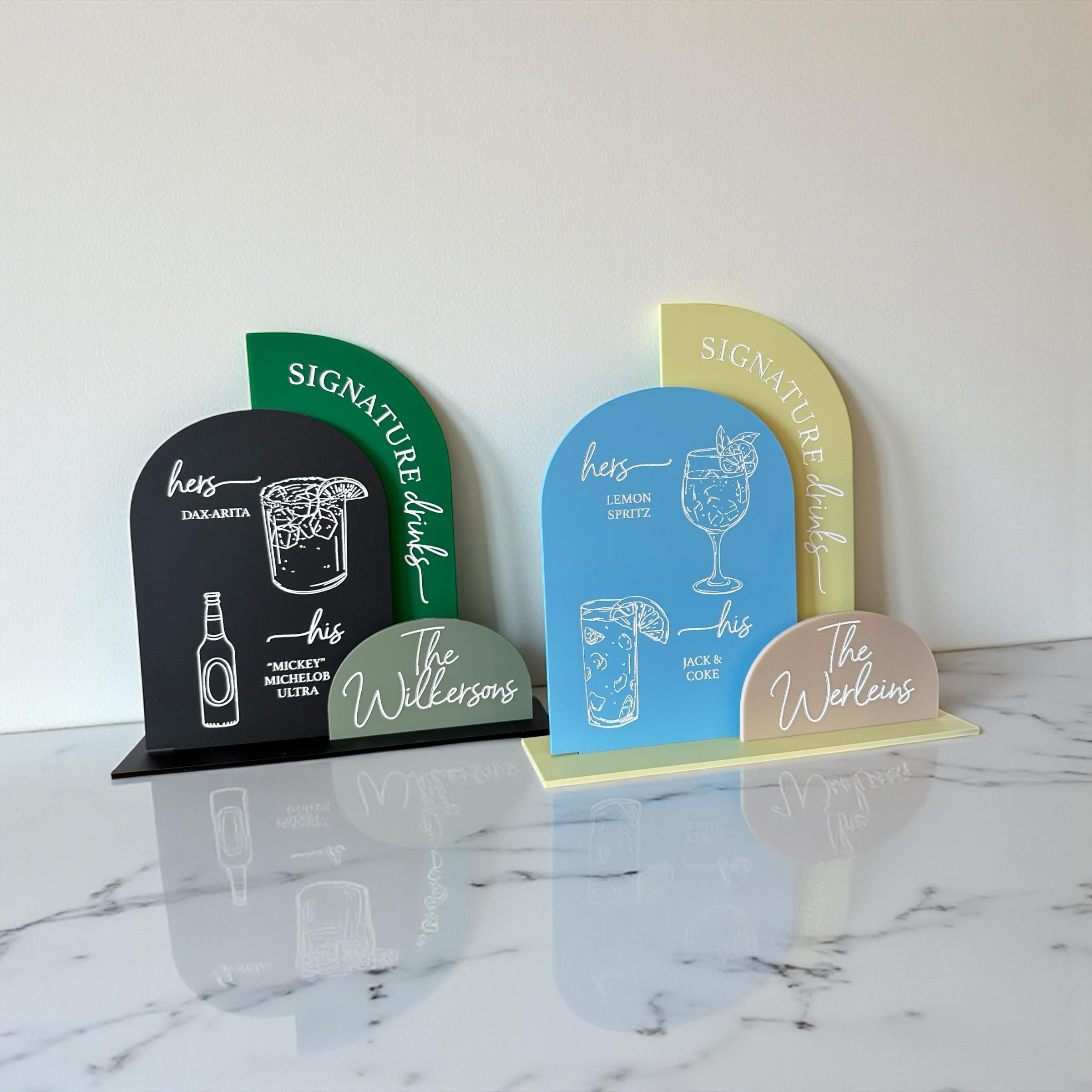 Signature Drink Bar Menu Sign, Custom Acrylic Cocktail Sign, Personalized Wedding Bar Menu, His & Hers Drinks Tabletop Sign, Open Bar