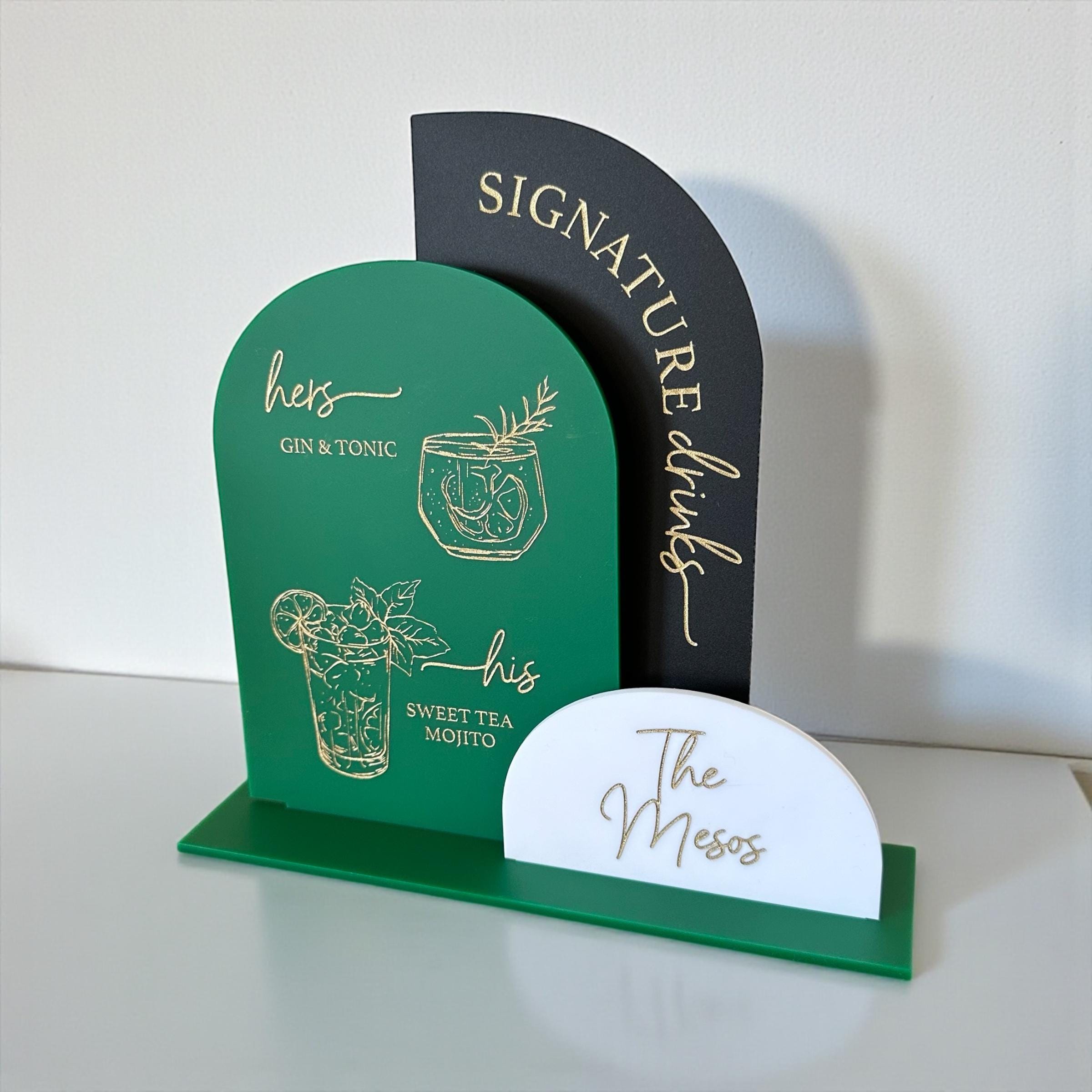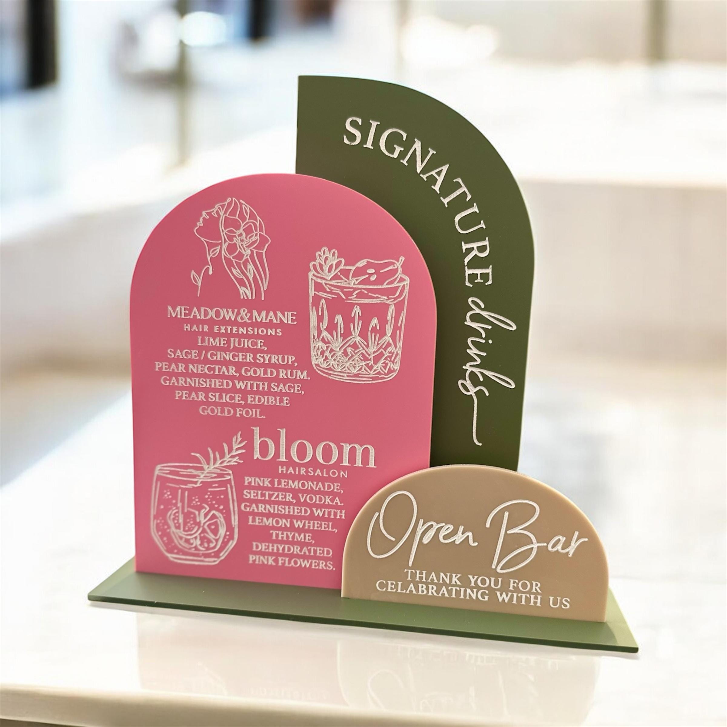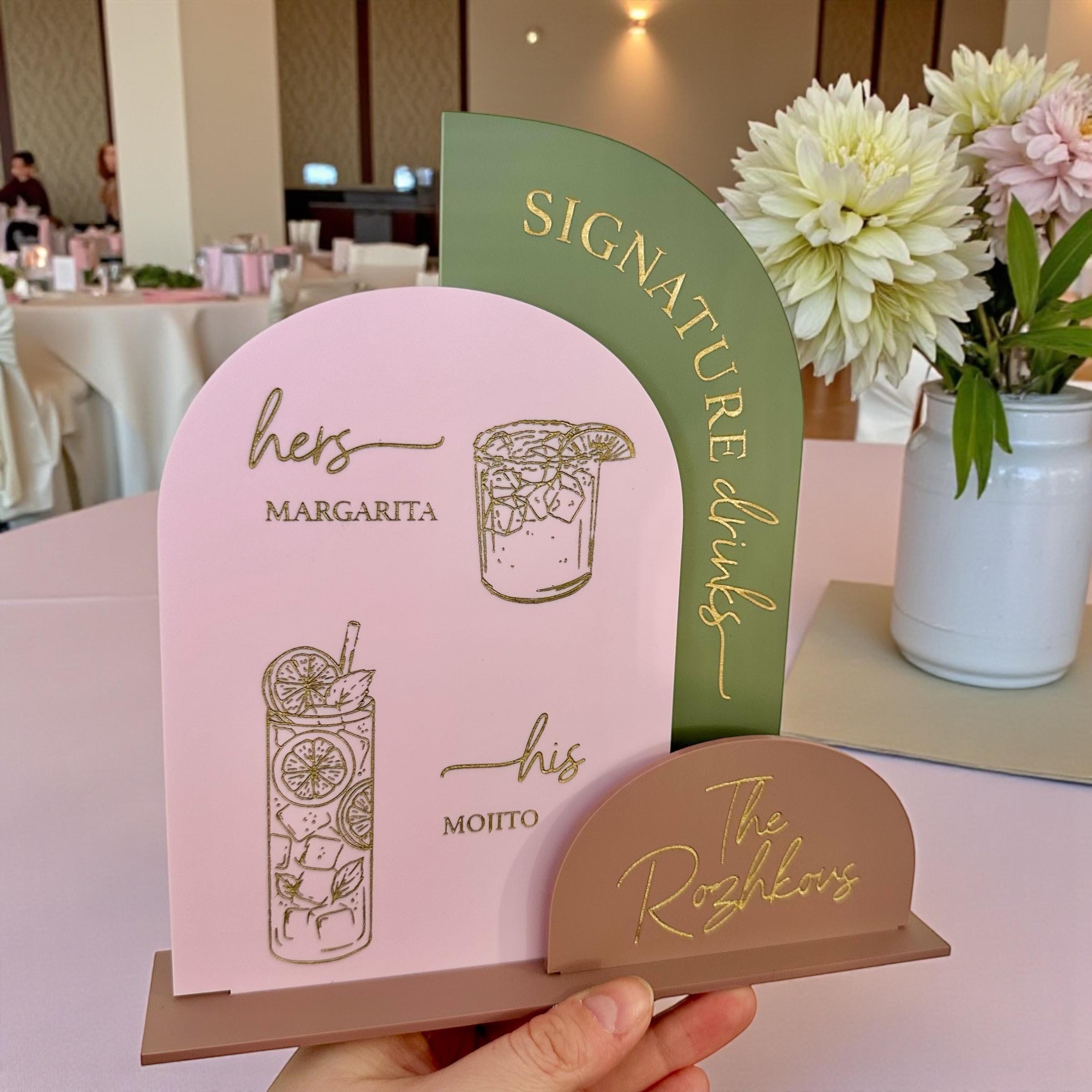 Signature Drink Bar Menu Sign, Custom Acrylic Cocktail Sign, Personalized Wedding Bar Menu, His & Hers Drinks Tabletop Sign, Open Bar