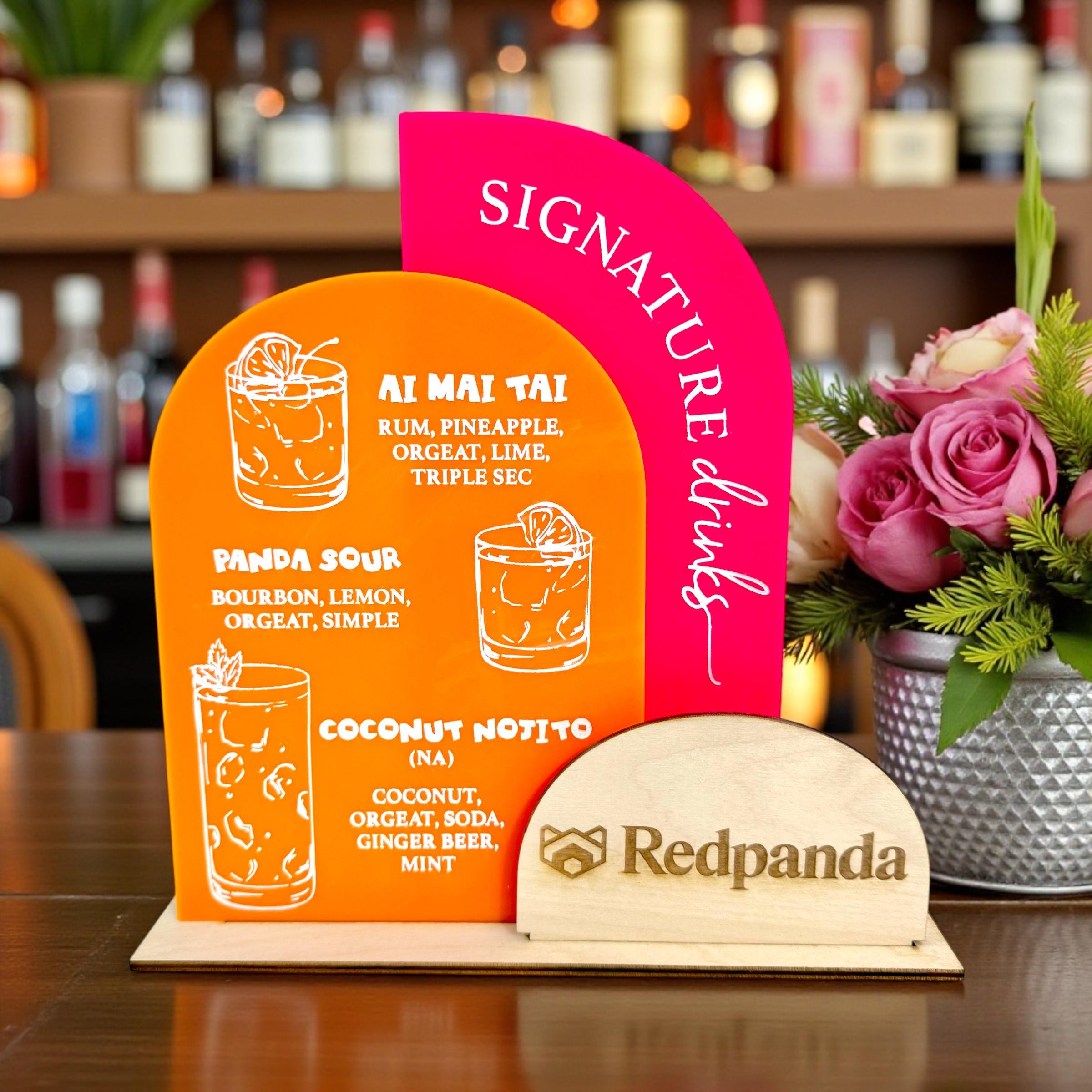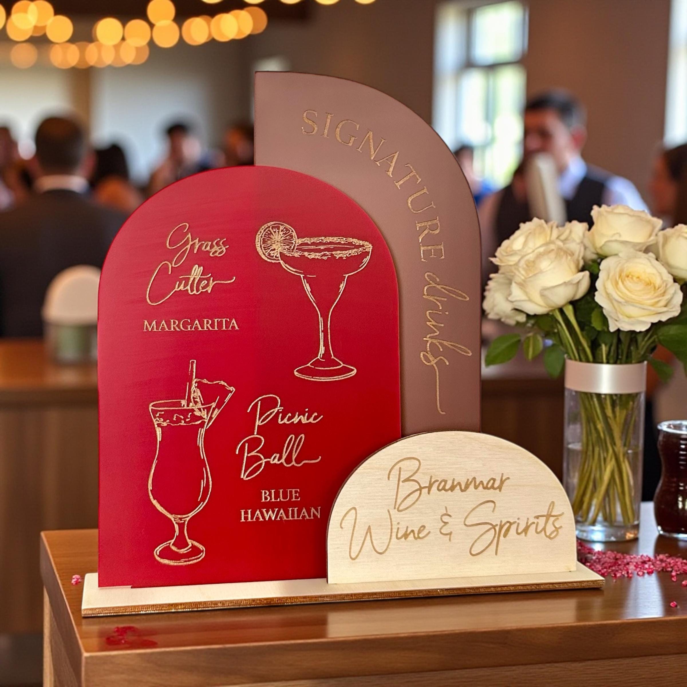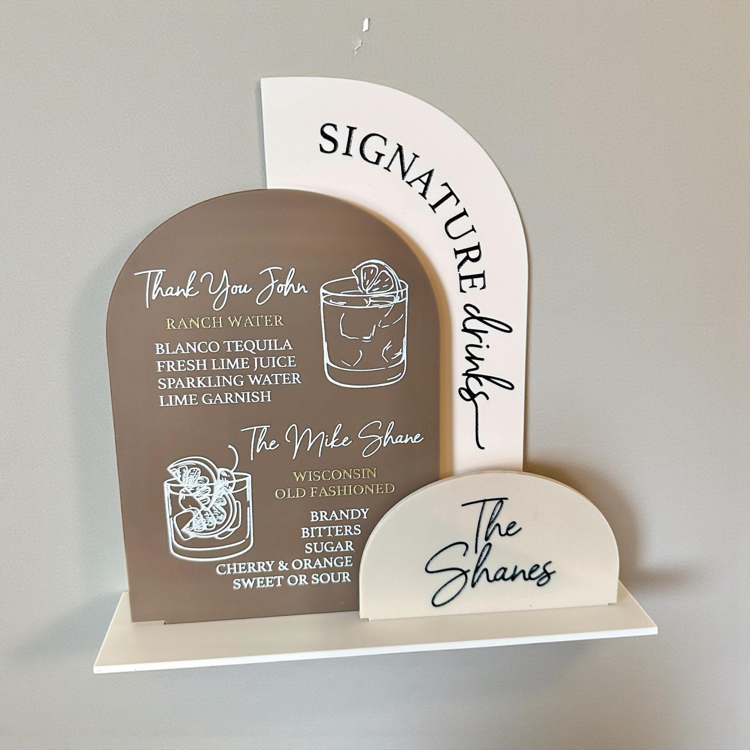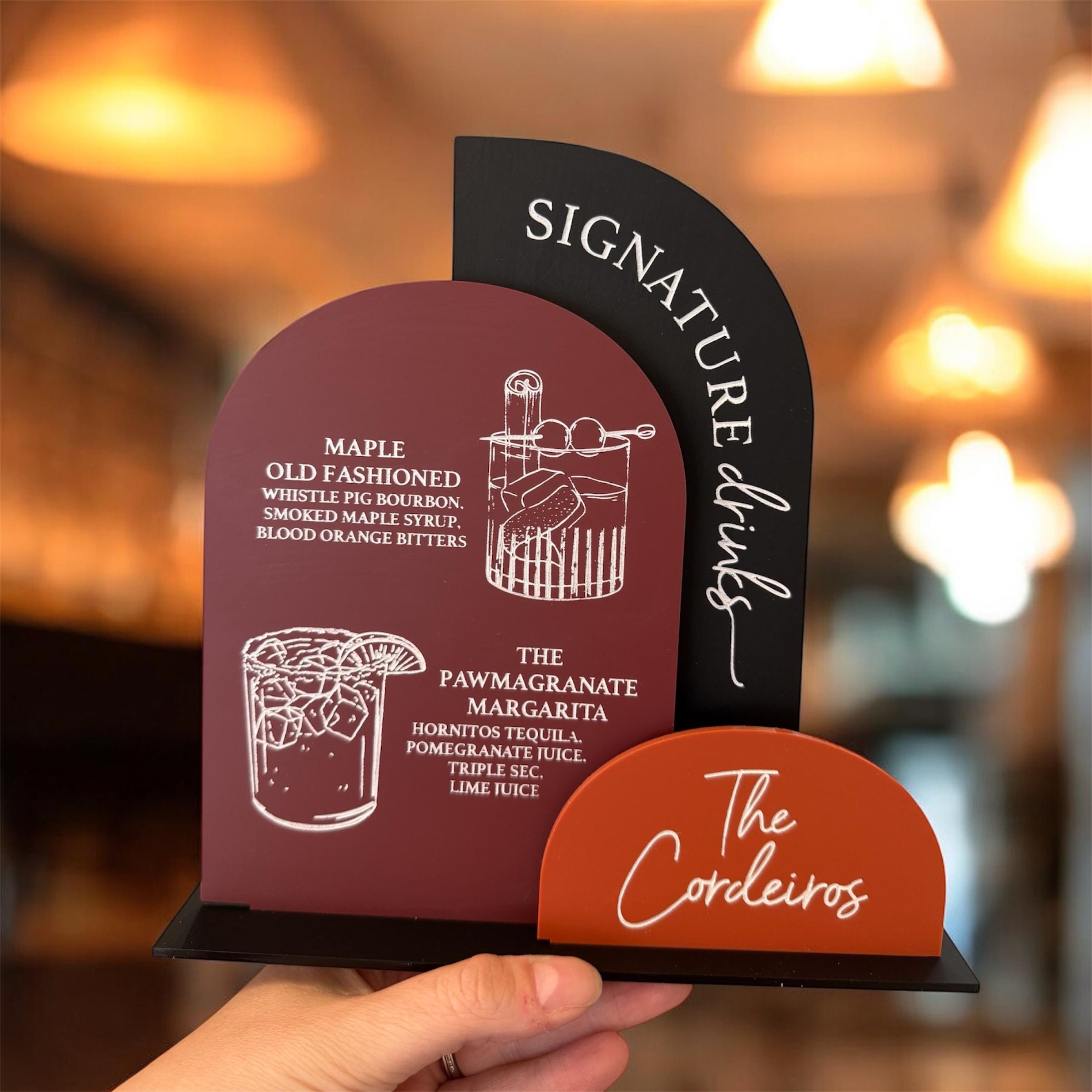 Elevate your wedding bar with a custom Signature Drink Menu Sign! Personalized with your names and favorite cocktails, this acrylic sign is the perfect blend of elegance and function.