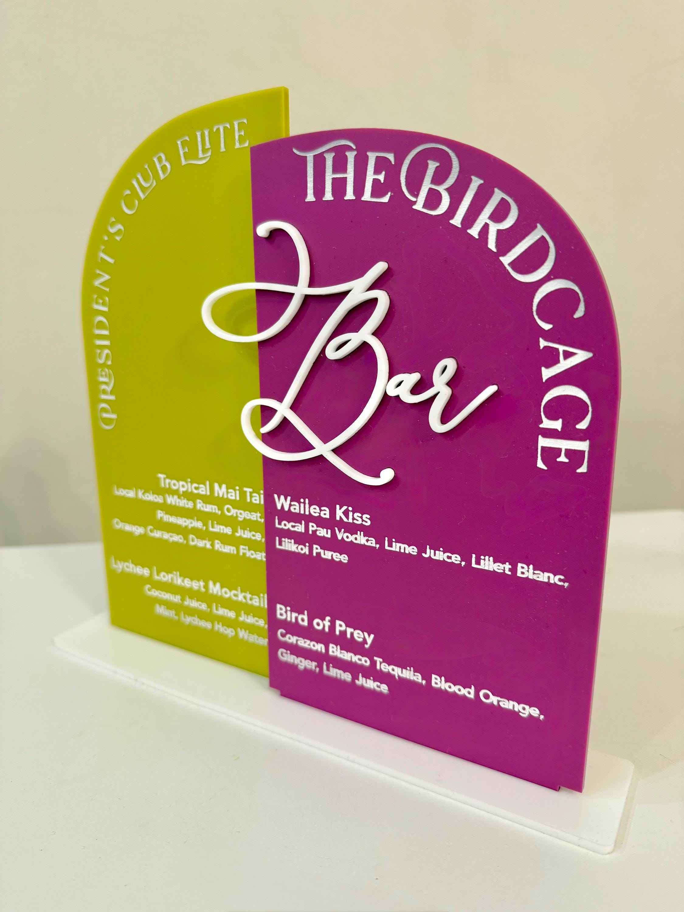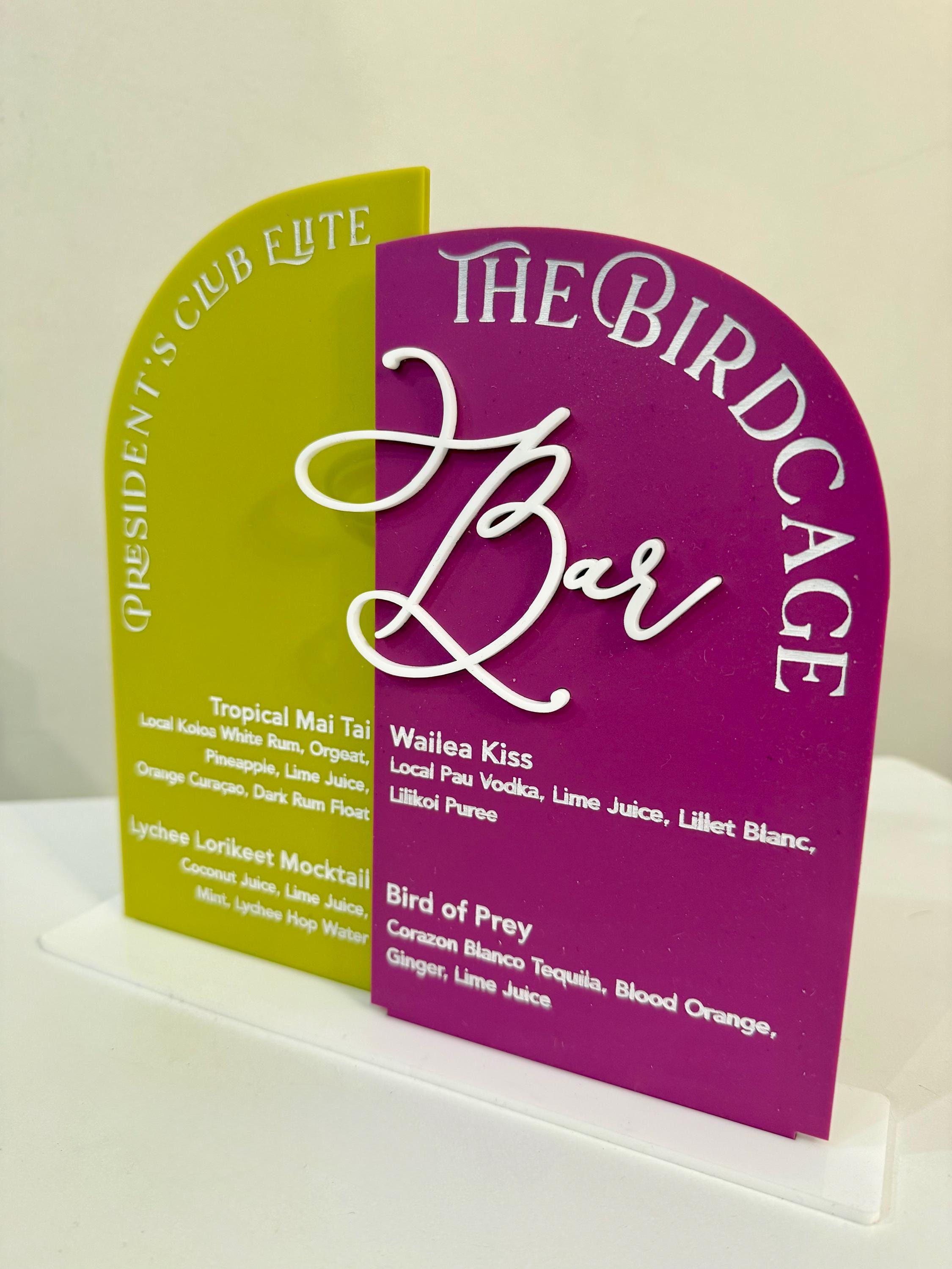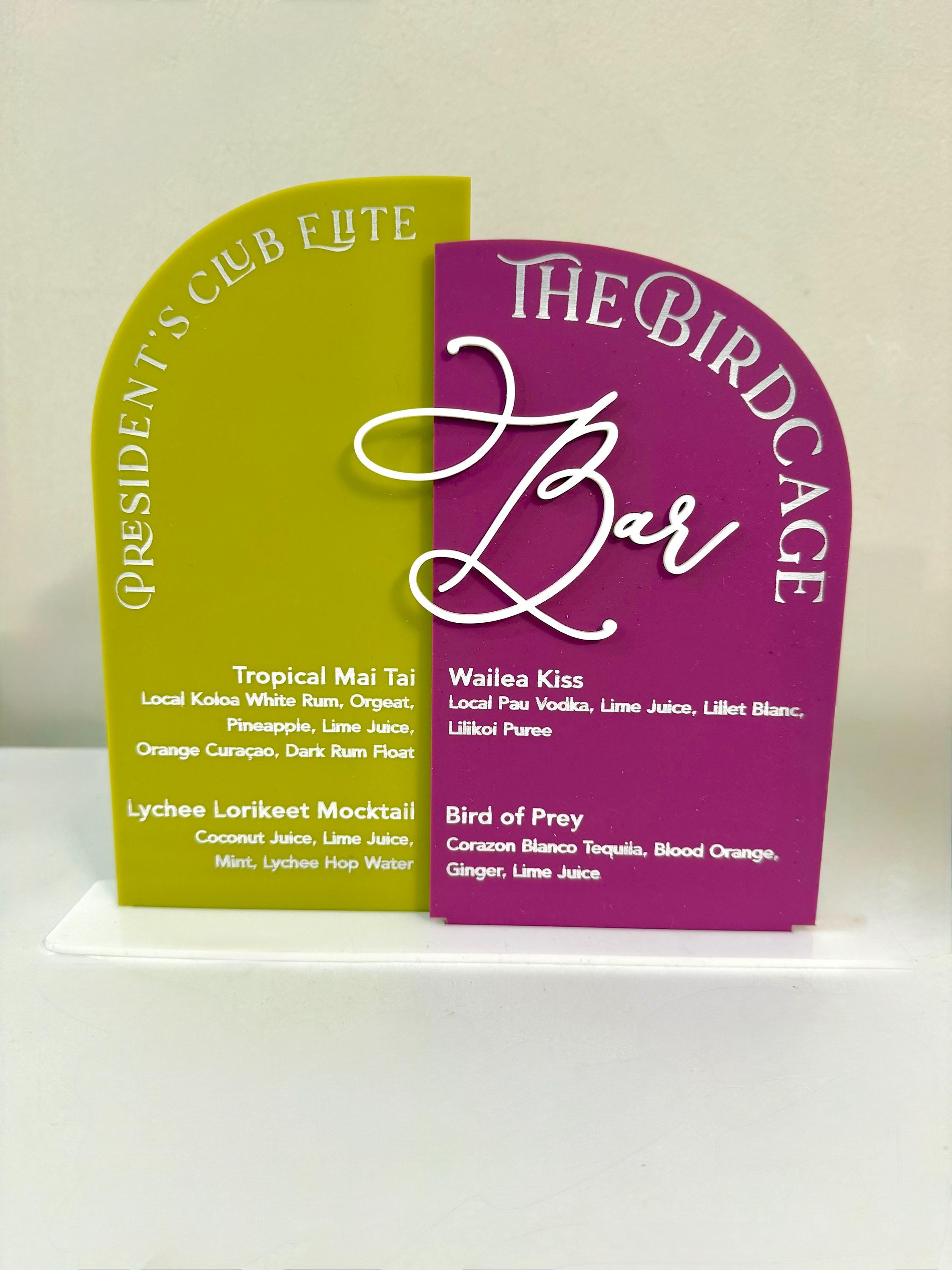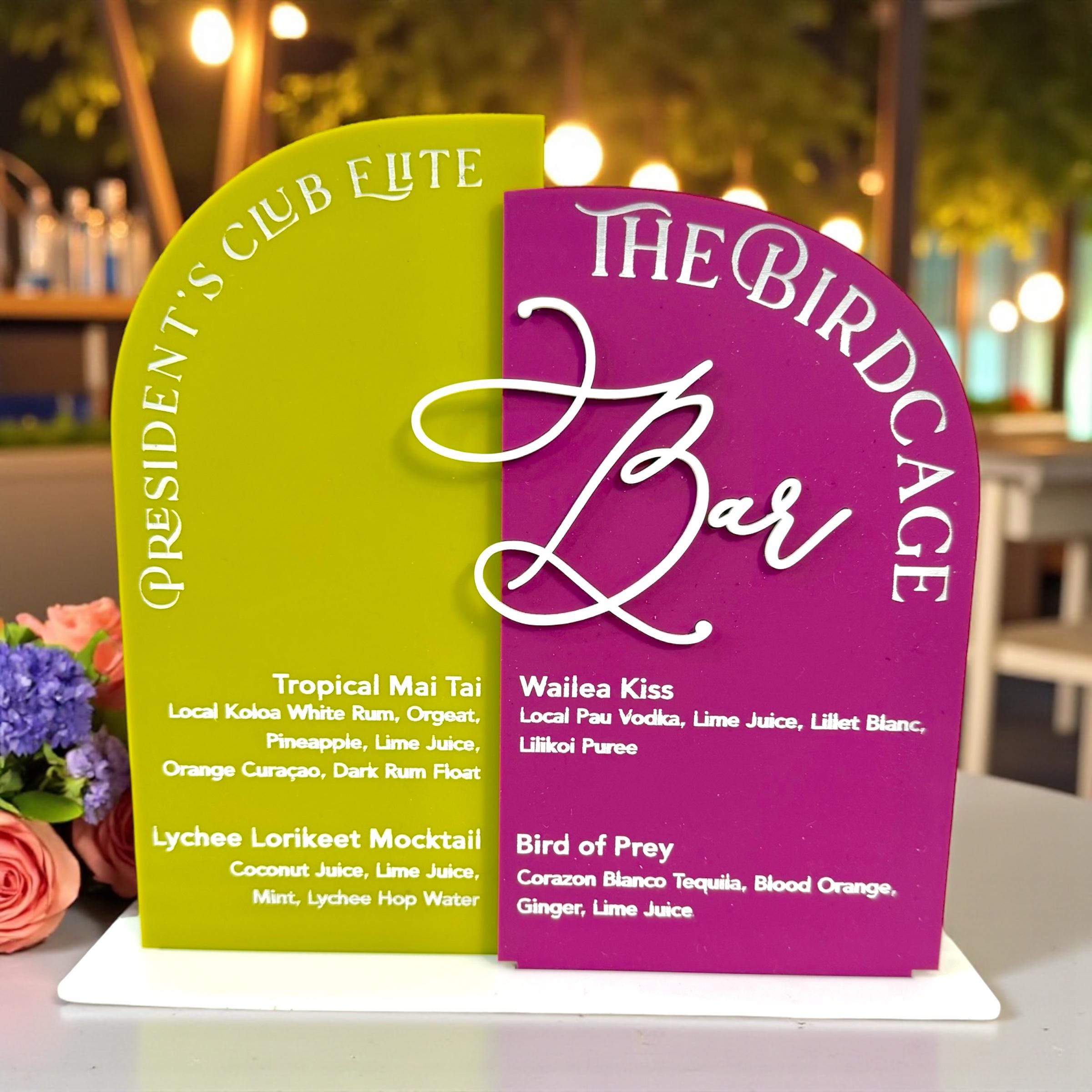 Elevate your bar with a custom Signature Drink Menu Sign! Personalized with your names and favorite cocktails, this acrylic sign is the perfect blend of elegance and function.