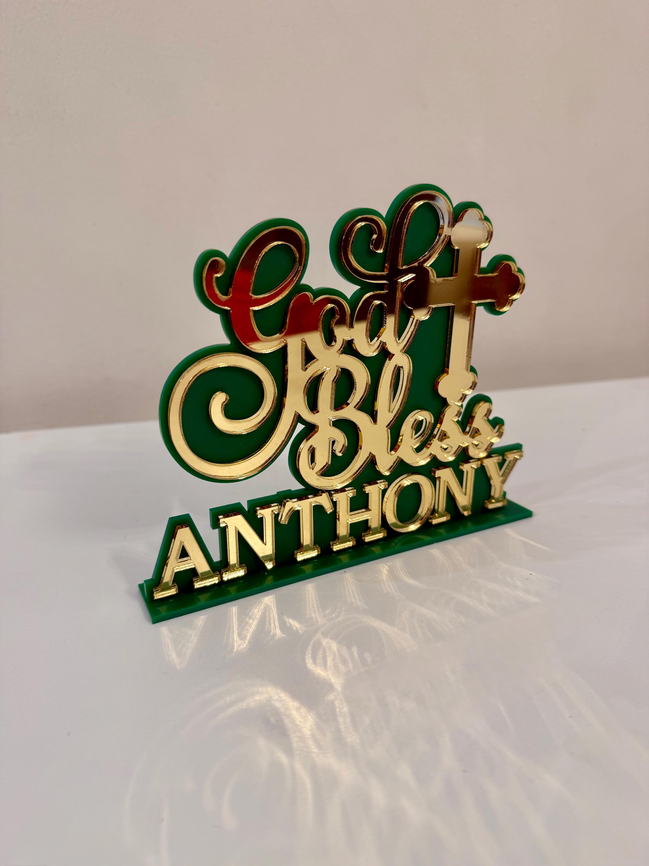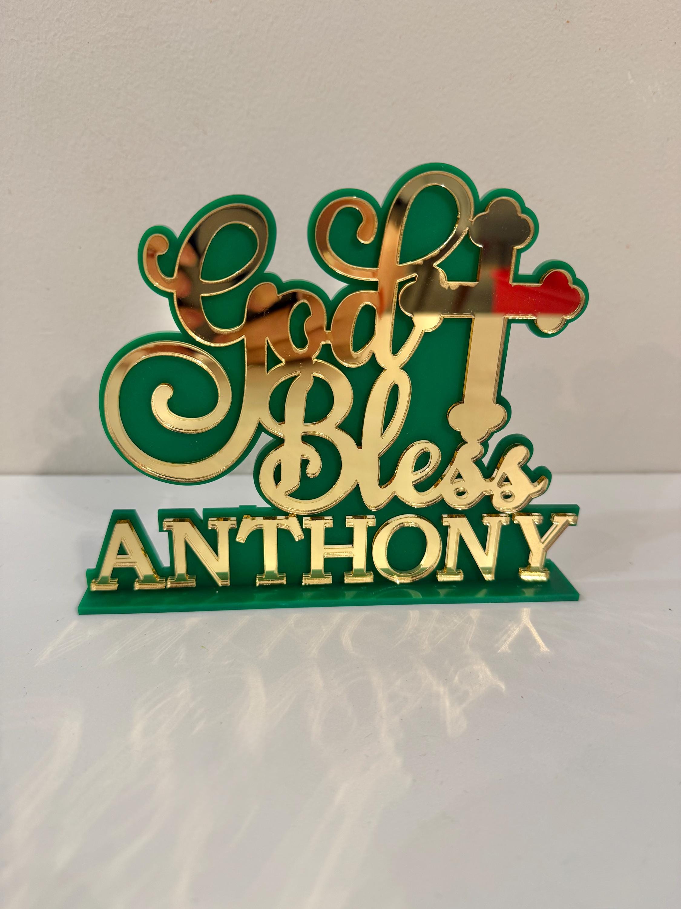 Celebrate Your Special Day with a Personalized “God Bless” Cake Topper Keepsake